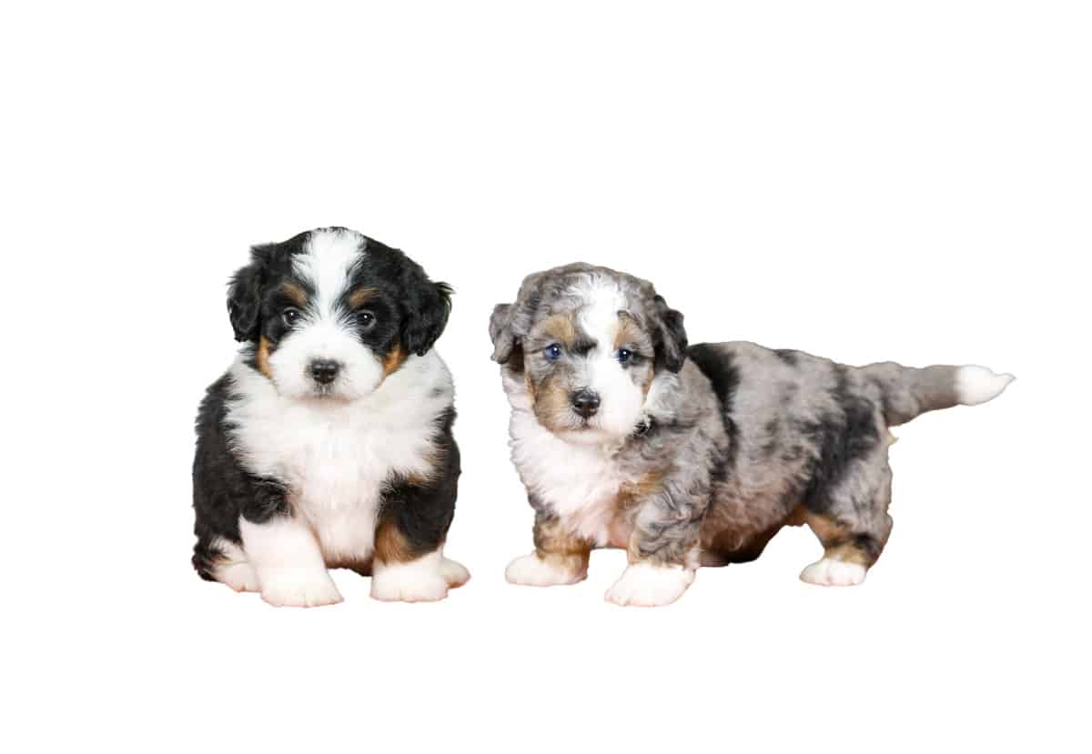 Mini Bernedoodles are not pocket or teacup dogs but are substantially smaller than the standards. A Mini Bernedoodle is about 18 to 22 inches tall at the shoulders and only weighs 25 to 50 pounds. Minis are the product of pairing a Miniature or Toy Poodle with a Bernese Mountain Dog. Typically, Miniatures make a better match because using Toy Poodles sometimes results in exaggeratedly long backs and dwarfed legs. Toy Poodle crosses can sometimes produce Toy Bernedoodles which can be as small as ten pounds. Bernedoodles also tend to become smaller with subsequent backcrosses to Poodles over the generations except with the exclusive use of Standard Poodles. Unlike many other downsized dogs, Miniature Bernedoodles have better health and a longer lifespan than their standard counterparts. They can live 12 to 18 years.