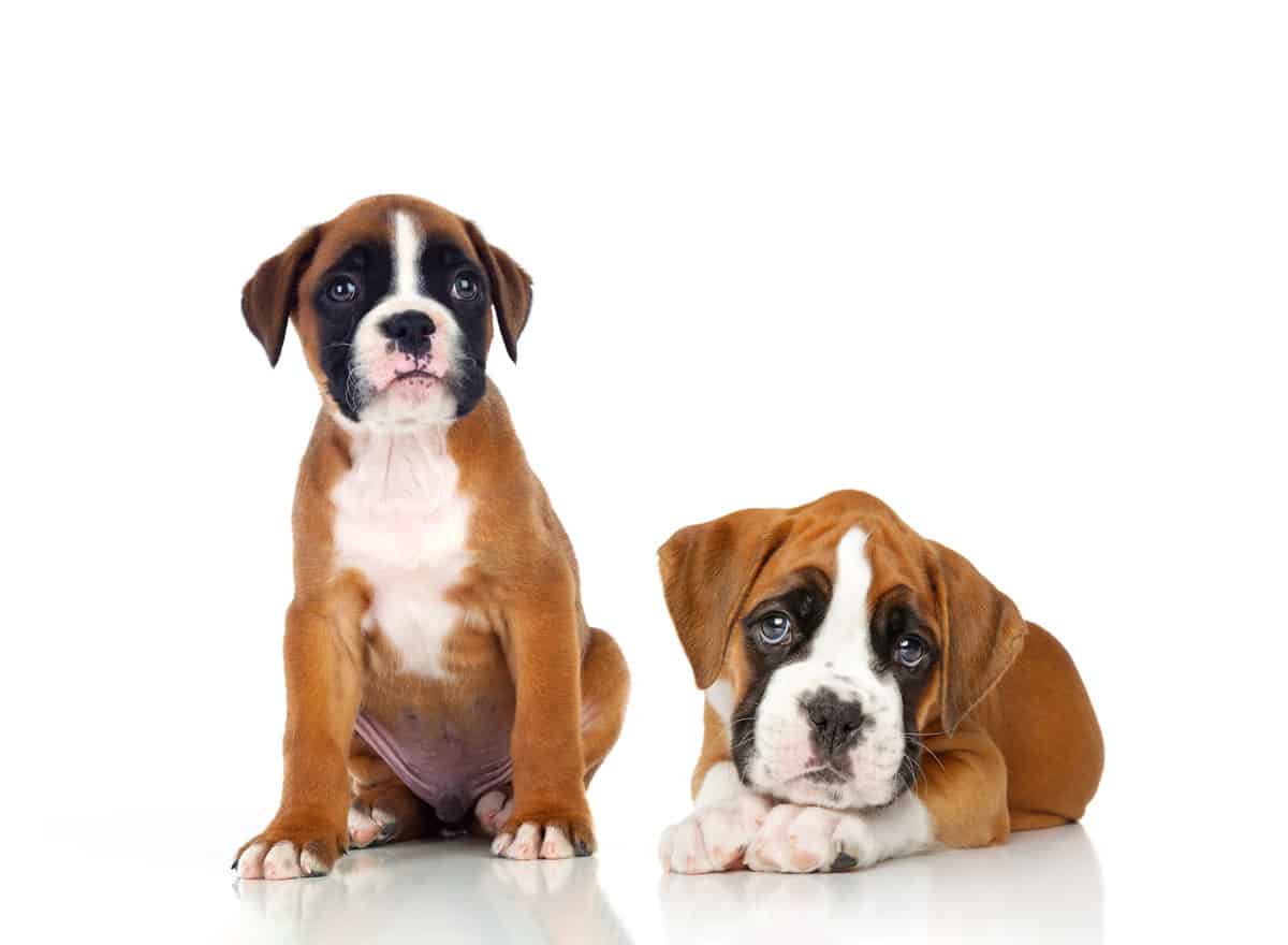 The American Kennel Club only recognizes a fawn or a brindle Boxer. Both of these standard colors can have varying amounts of white. According to the AKC, the white cannot exceed a third of the dog’s overall color. Boxers must always have a black mask, although not visible on brindle dogs. The face may have some white on it. Even if not standard, a white boxer does exist and is quite common. A white boxer can be devoid of all other colors or may have patches of fawn, brown, or brindle. White dogs can also have black speckles. If a litter of white Boxer puppies for sale has a premium price tag, exercise caution. White Boxers have an increased likelihood of deafness, and high prices on a faulted color may indicate unethical motives for breeding. Furthermore, it may be weeks before you realize your Boxer cannot hear.