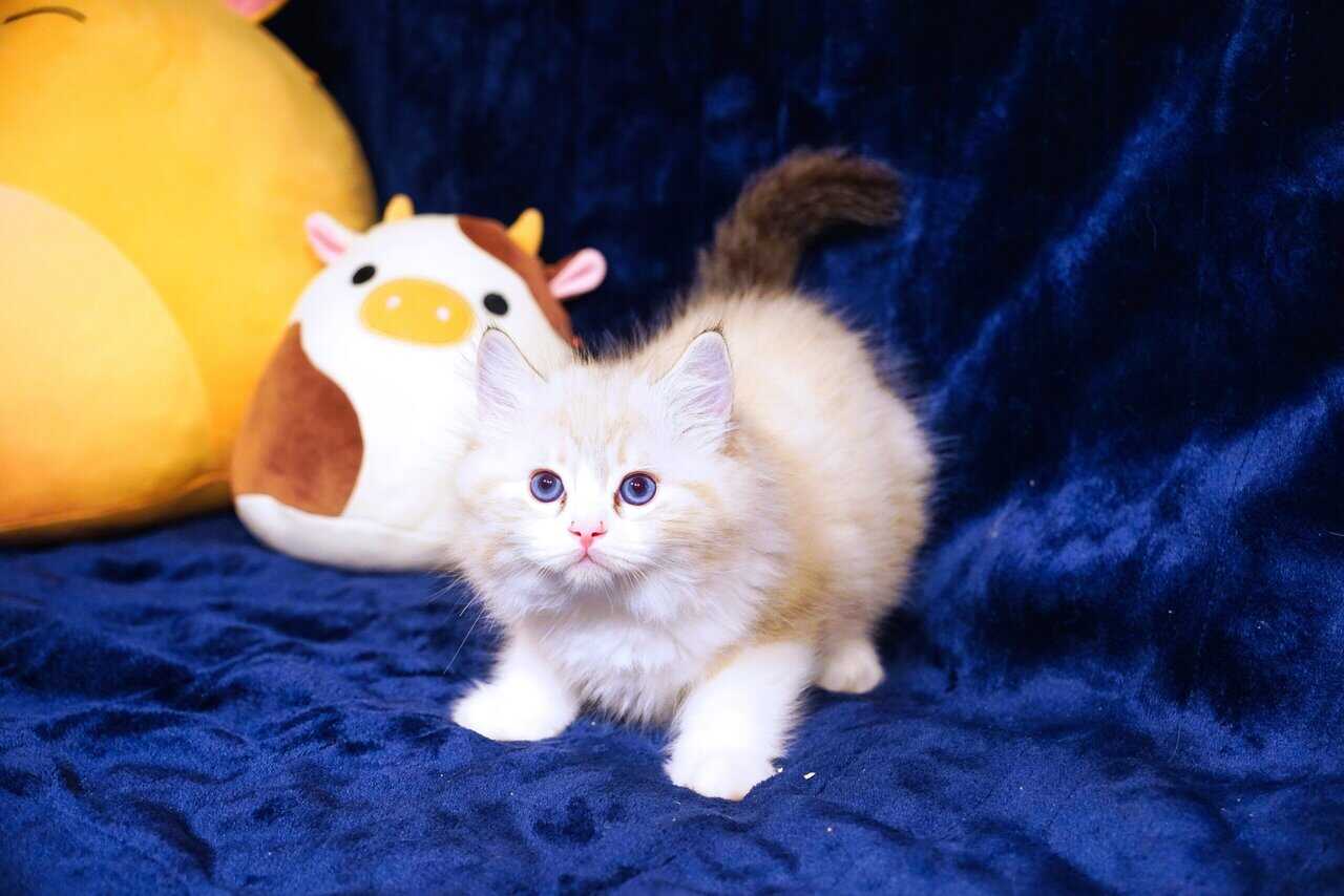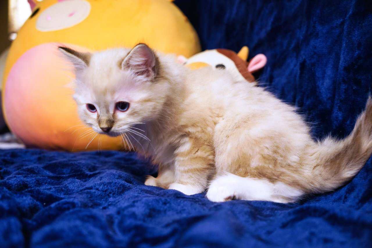 This little guy is a beautiful seal lynx with exotic markings. He is the quintessential Ragdoll. We call him Trip because he looks just like his daddy, Colby, so we named him after Colby - Colby the 3rd. He is a little ball of spunky energy until he is picked up, then he melts like only a Ragdoll can! He enjoys being right beside his person and he doesn’t understand “personal space”, he is a little velcro kitten for sure!