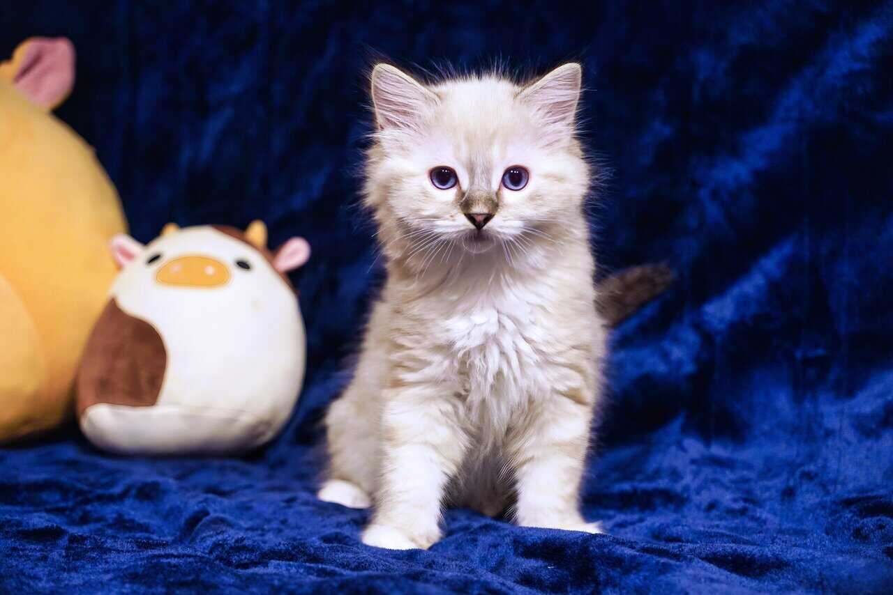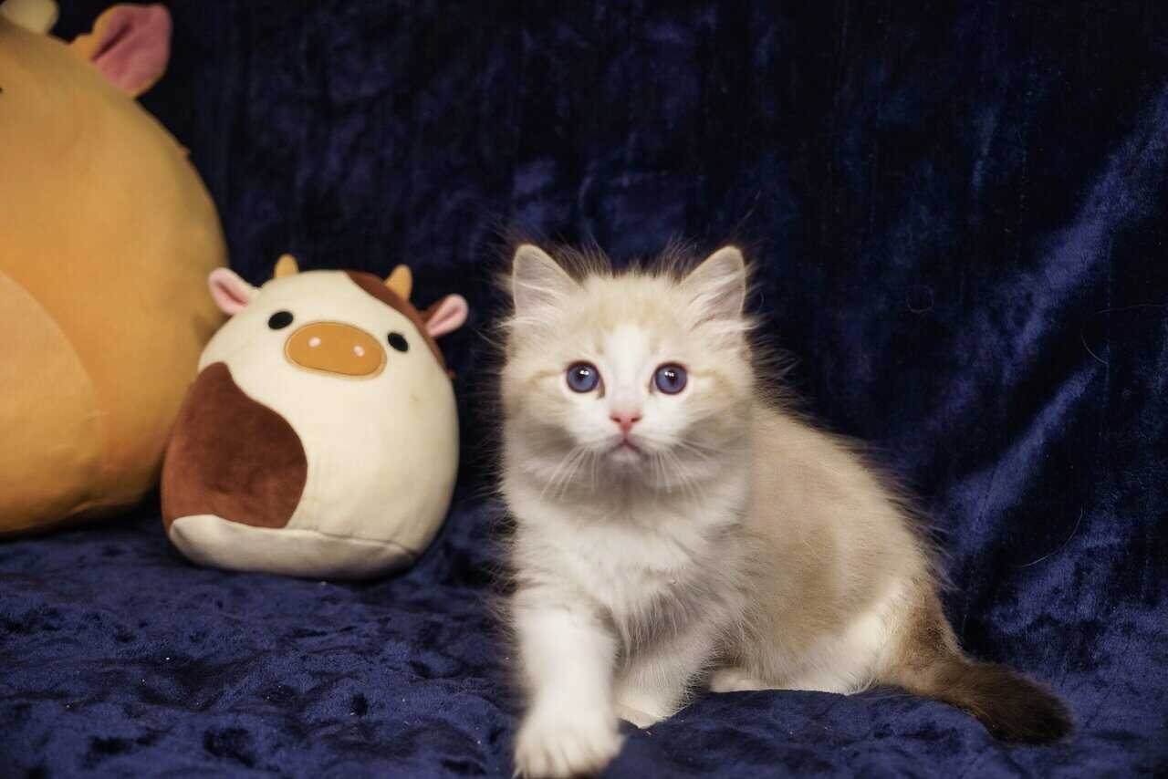 This little boy is a seal bicolor with standard markings. He is inquisitive, yet a bit cautious and reserved. He enjoys being pet and snuggled and will flop when he is picked up.