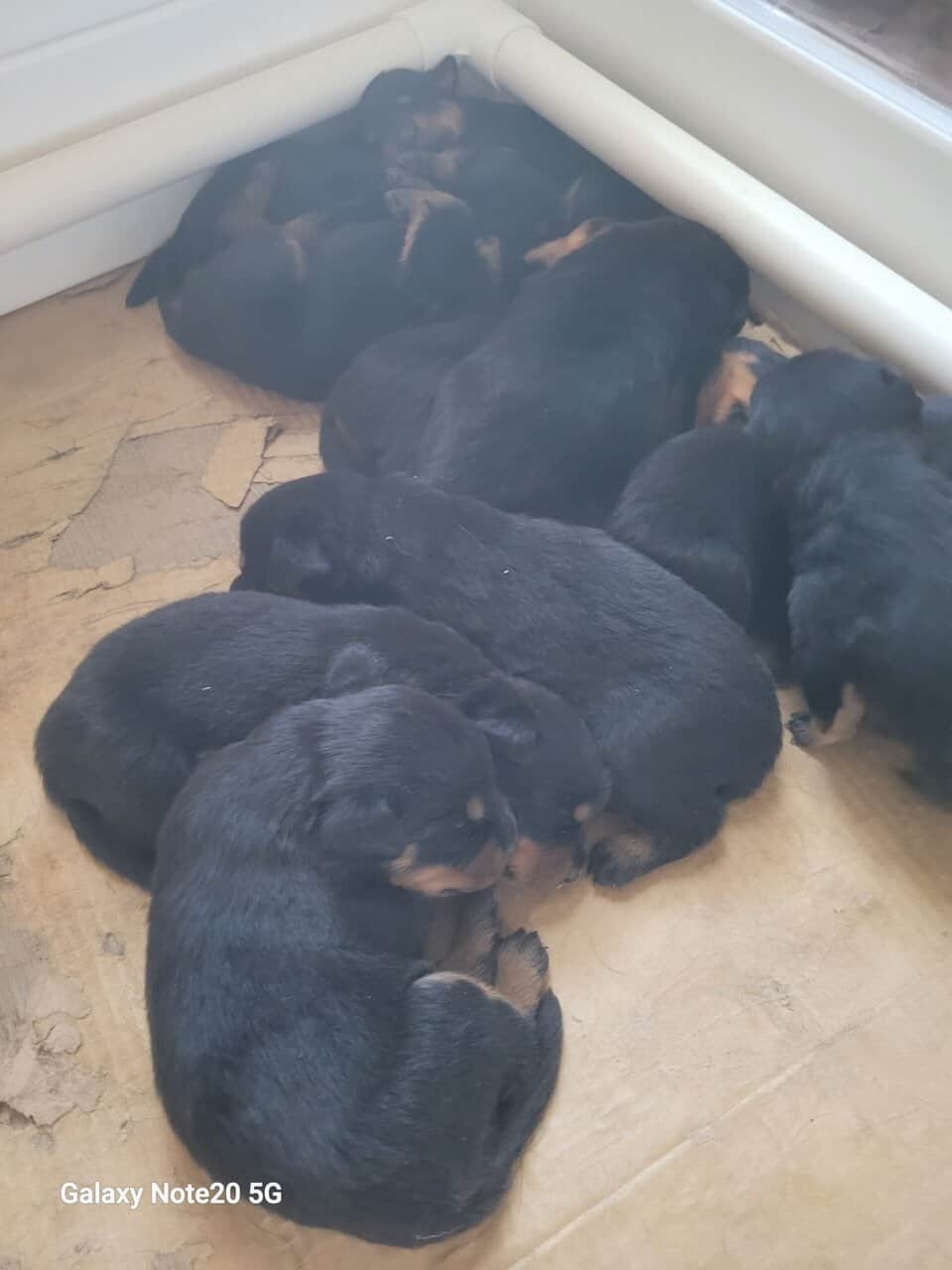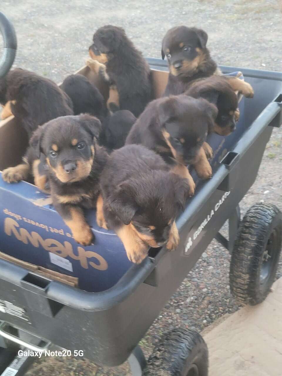 Black and Mahagany puppies available October 12, 2025. Pine city Minnesota. Message for information. AKC Registered parents.