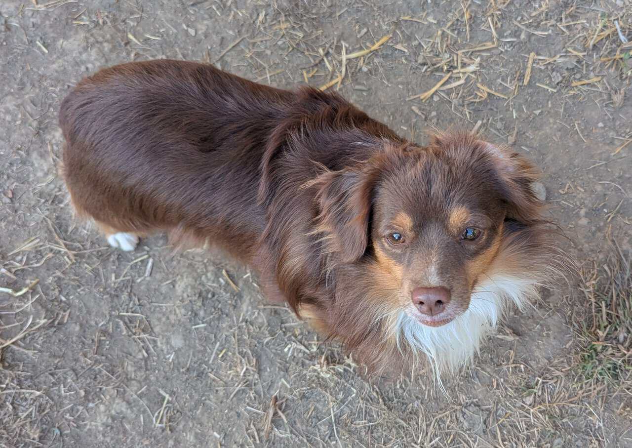 DUNDEE is a beautiful, fun, energetic 2-year-old Toy Aussie! He weighs about 12 pounds, and has a red and white coat. He will come with collar and leash, and vet records... but he doesn't like the leash! He's always been an inside dog with fenced yard, so no need to leash train him as yet. He has not been "fixed," because we have been using him for breeding. He is initially shy, but will stay all day on your lap if you let him! He seems good around children and other animals, with limited exposure. He is available immediately! Don't wait, these Toy Aussies are not common!