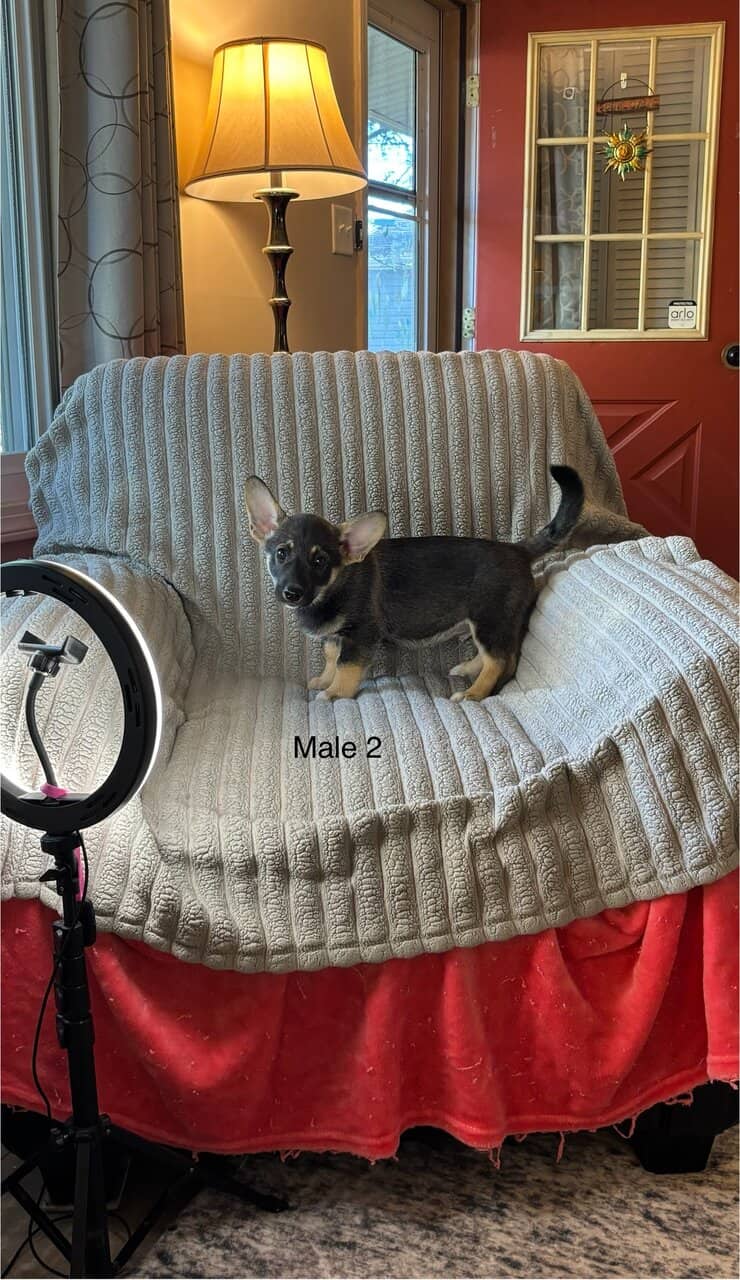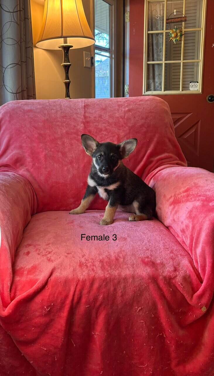 Please help me find good homes for these 5 Beautiful Pembroke Welsh Corgi x Norwegian Elkhound puppies ! There are 3 females and 2 males to choose from . Most have short legs like mom . 10 weeks old, first shots and dewormed . They have been raised with and love kids and other pets since birth ! Started on crate training and going potty outside and are doing very well for their age too ! Their beautiful mom is also pictured .